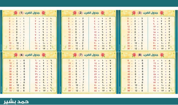 جدول الضرب كامل من 1 إلى 12 بالعربي ملزمتي