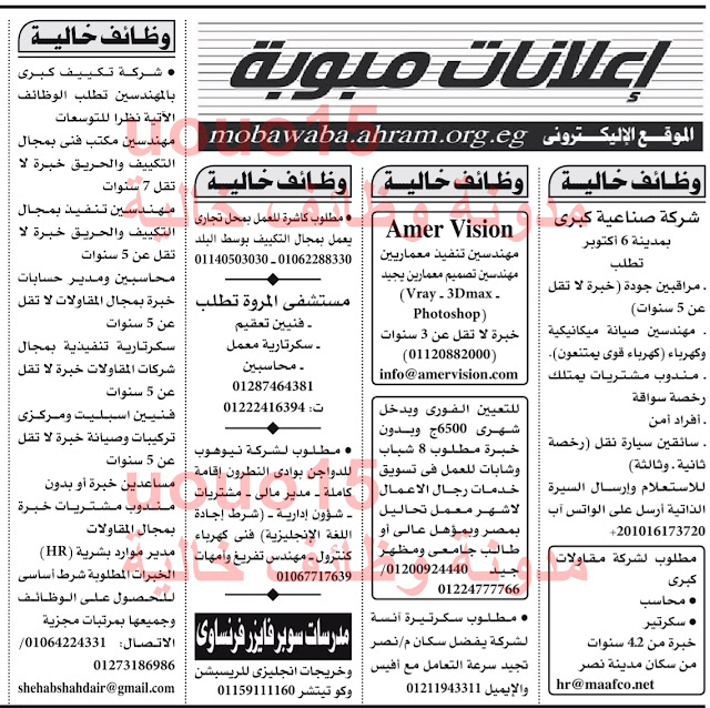 زي ماعودناكم كل اسبوع اليكم عشرات الوظائف من الاهرام مصر والخليج