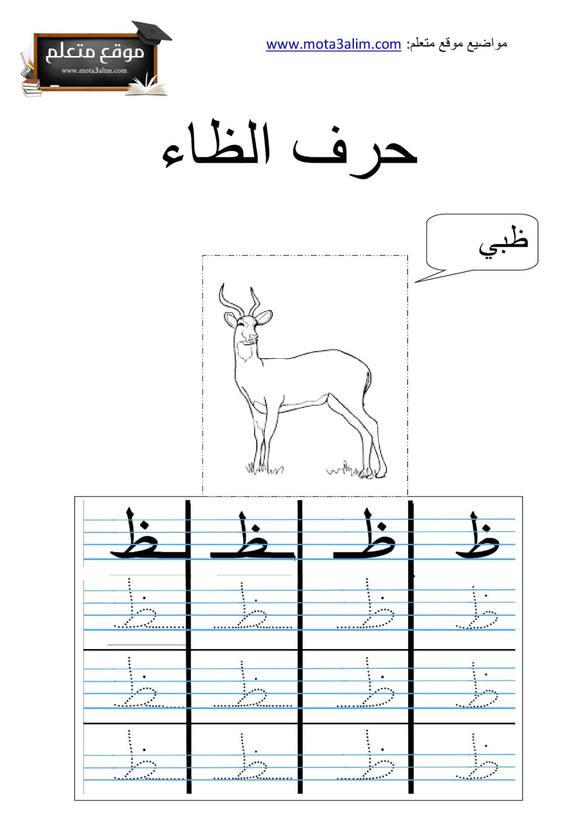 شرح حرف الظاء للاطفال مع ورقة عمل حرف ظ Pdf