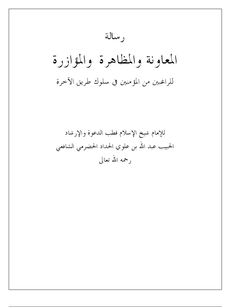 رسالة المعاونة والمؤازرة والمظاهرة للراغبين من المؤمنين في سلوك الاخره الامام عبد الله الحداد